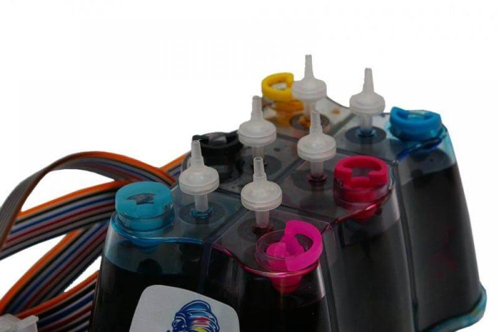 в процессе работы СНПЧ контейнеры располагались на одной плоскости с печатающей головкой либо на уровне, показанном для определенной модели устройства;