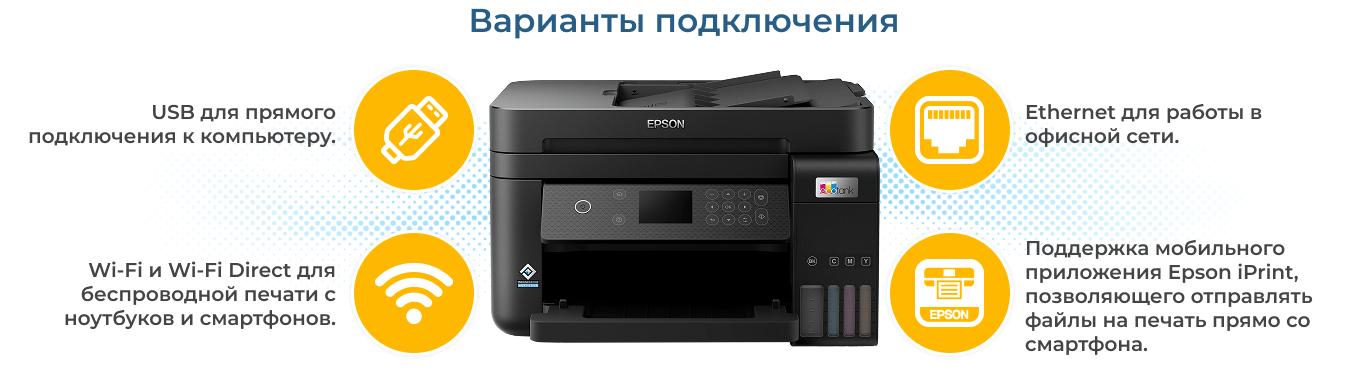 Epson EcoTank L6270 совмещает функции печати, сканирования и копирования, что делает его удобным решением для повседневных задач. Это модель формата A4 со встроенной системой непрерывной подачи чернил (СНПЧ), благодаря чему расходы на печать значительно ниже по сравнению с использованием картриджей. Устройство подойдёт для домашнего использования — печати учебных материалов, фотографий или документов, а также для малого и среднего бизнеса: бухгалтерий, офисов, образовательных центров. Благодаря надёжности и экономичности модель справляется с регулярными нагрузками и удобна в условиях многозадачности.