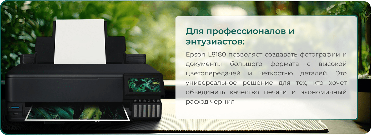 Epson EcoTank L8180 - это продвинутый МФУ 3-в-1 (печать, сканирование, копирование), ориентированный на высококачественную цветную и фотопечать формата A3+.