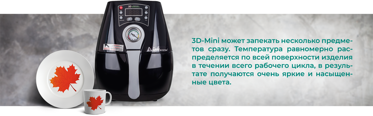 | Особенности модели | цифровая панель управления таймером и температурой, звуковой индикатор, нанесение изображения на плоские и объемные поверхности изделия различных форм |