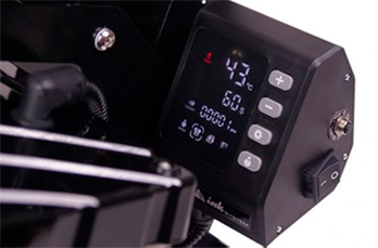 При работе с термопрессом важно помнить, что температура нагревательной плиты может подниматься до 210°. Чтобы оператор не получил ожоги, предусмотрена выдвижная нижняя плита. Взаимодействие с ней дает возможность управлять рабочим процессом, не дотрагиваясь к горячим фрагментам конструкции. Также вы можете не беспокоиться о перегреве заготовки — магнитный замок фиксации прижима после окончания рабочего цикла отключается. После этого плита поднимается на высоту, которая безопасна для заготовки. Это исключает риск «передержать» и испортить изделие.